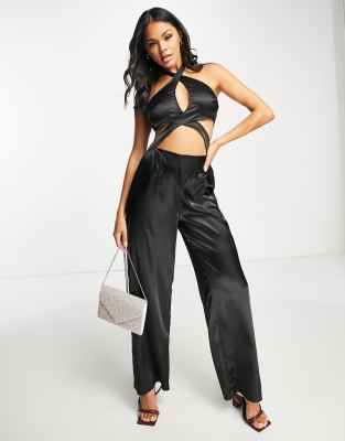 Romper by AsYou Exclusive to ASOS Halterneck style Cut-out panels Tie-back fastening Wide leg Regular fit