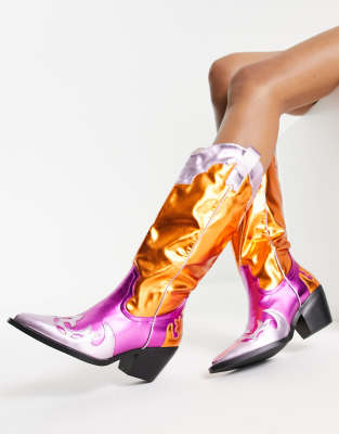 Shoes by AZALEA WANG Level up Western design Pull-on style Pointed toe Mid block heel