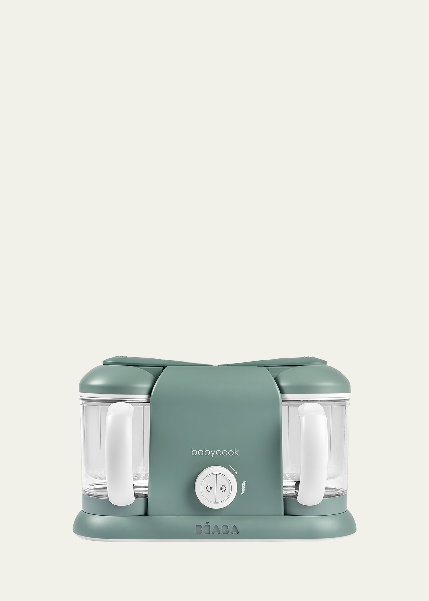 BEABA "Babycook Duo" features two large 4.7 cup bowls with graduation markings to steam foods simultaneously. Prepare baby's fruits, vegetables, meat or fish from raw to any stage in 15 minutes or less. Unique, one-handed design allows you to hold baby in one hand and prepare food in the other. Includes spatula, mixing lid, smoothie filter, and recipe booklet. Stainless steel water reservoir. Patented steam heating system. BPA, lead, and phthalate free. Plastic. Hand wash. Imported.