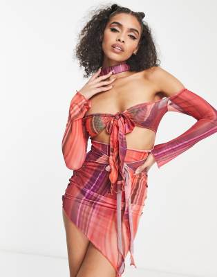 Bad Society Club cutout detail laddered 3/4 sleeve mini dress in multi