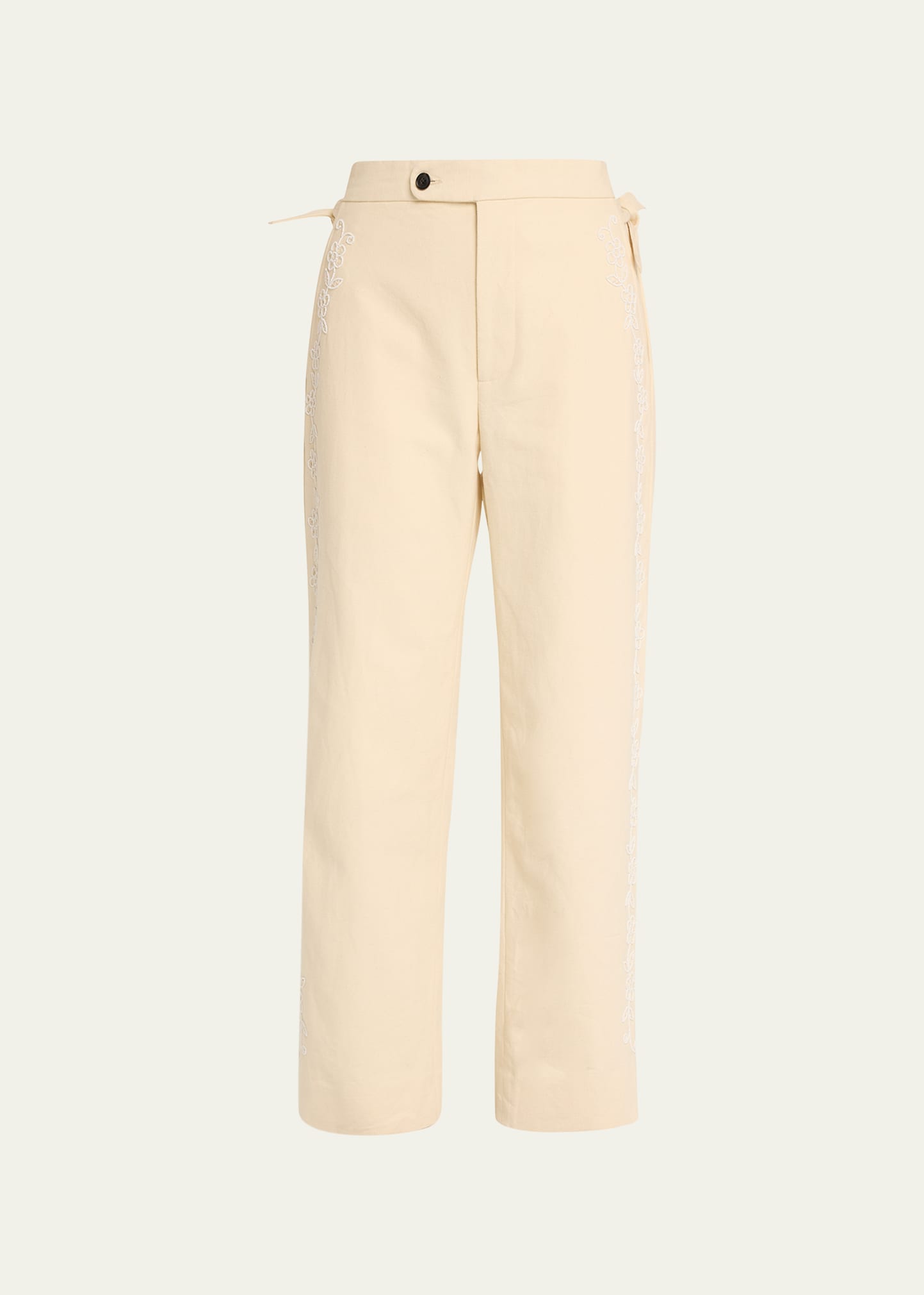 Bode Beaded jasmine trouser Cropped at the ankle Mid rise sits high on hip Linen/cotton Dry clean Imported