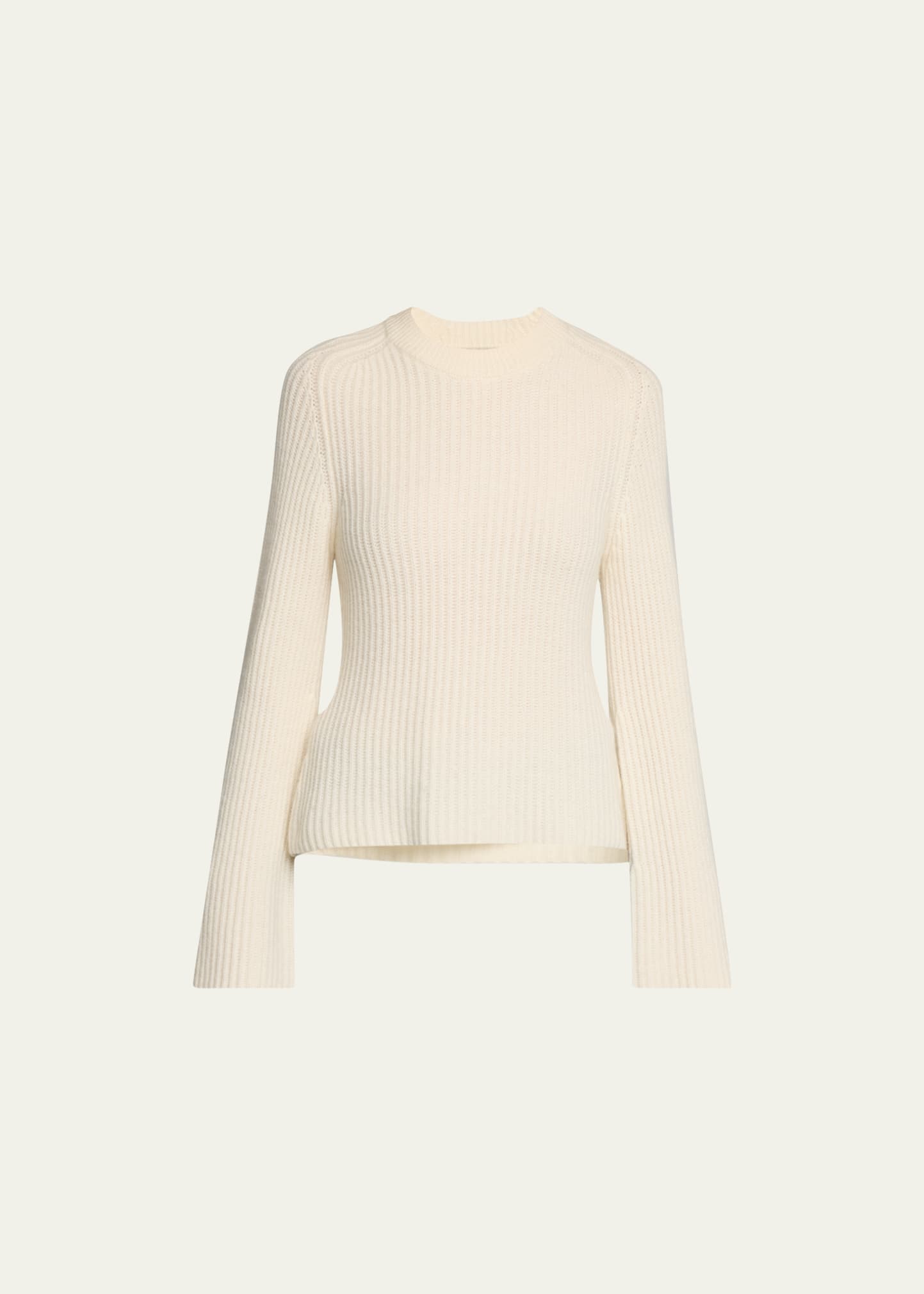 Loulou Studio bell-sleeve cashmere sweater Crew neckline Long sleeves Ribbed trim Hip length Pullover style Relaxed fit Cashmere Imported