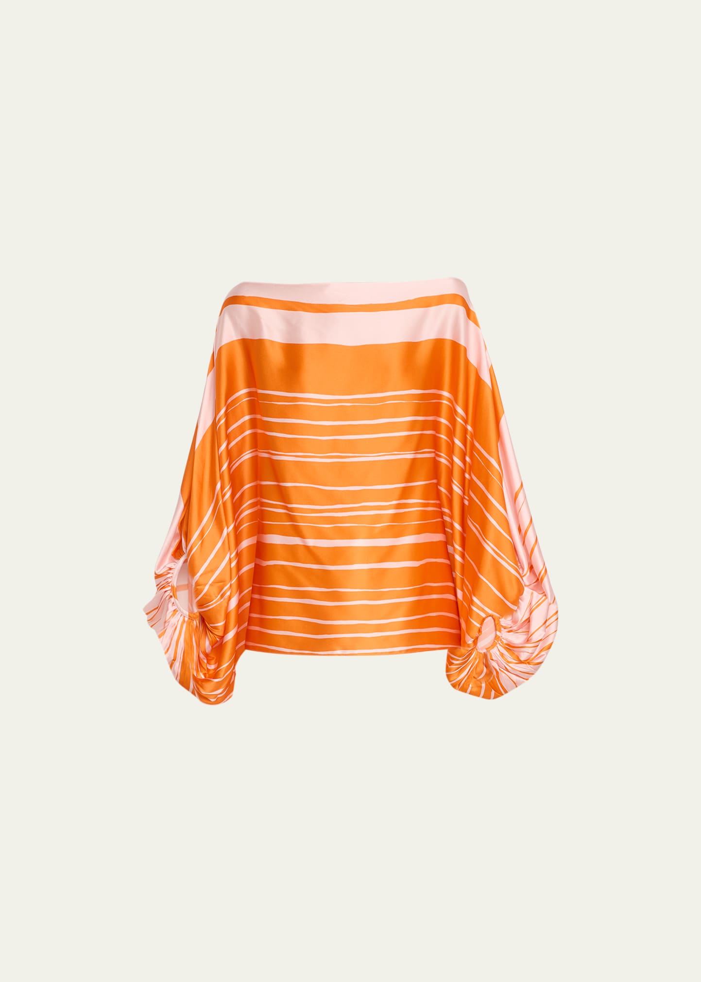 Silvia Tcherassi "Bellagio" blouse featuring stripe print Off-the-shoulder neckline Long blouson sleeves Loose fit Pullover style Silk/elastane Dry clean Made in Colombia