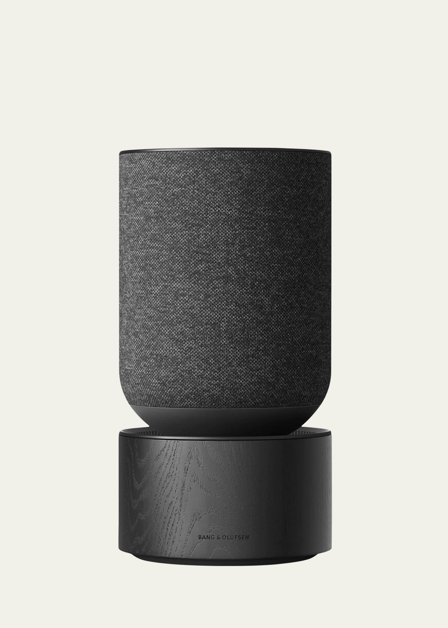 A wireless speaker with a dynamic acoustic performance designed to be positioned up against the wall on a shelf or side table in your home. Impressive sound compared to its size. Anodized aluminum/wood/plastic/textile. Approx. 5.1"Dia. x 19.7"T. Imported.