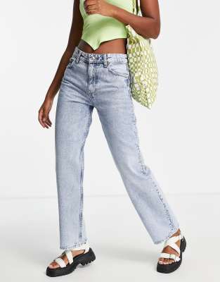 Jeans by Bershka Wear, wash, repeat High rise Belt loops Five pockets Straight leg