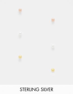 Bloom & Bay sterling silver 3 pack stud earrings in silver, rose gold and gold-Multi