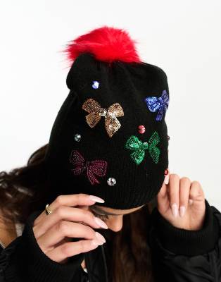 Beanies by Boardmans Put a lid on it Pom-pom detail Domed crown Sequin embellishment
