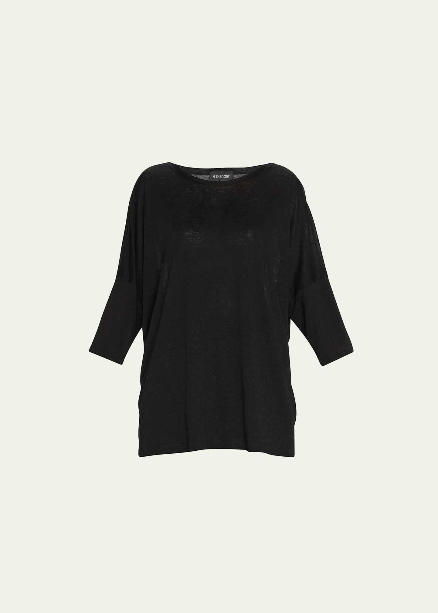 Eskandar T-shirt with sloped shoulders Boat neckline Long sleeves Wide fit Long length Pullover style Linen Made in Italy