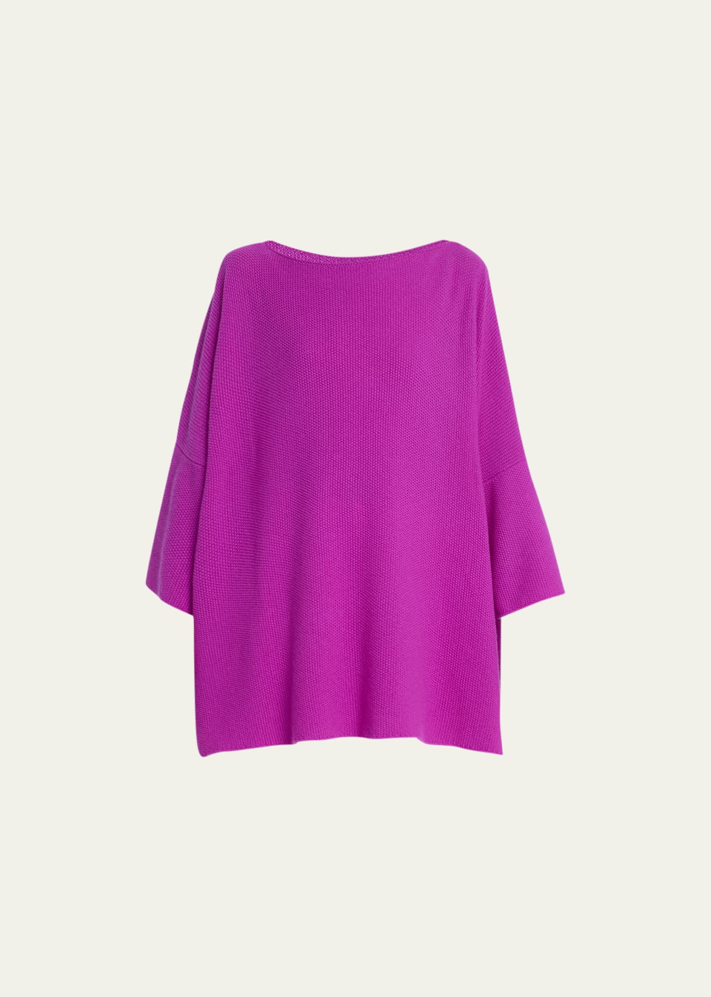 Eskandar textured top Boat neckline Three-quarter sleeves Long length Pullover style Cashmere Made in United Kingdom