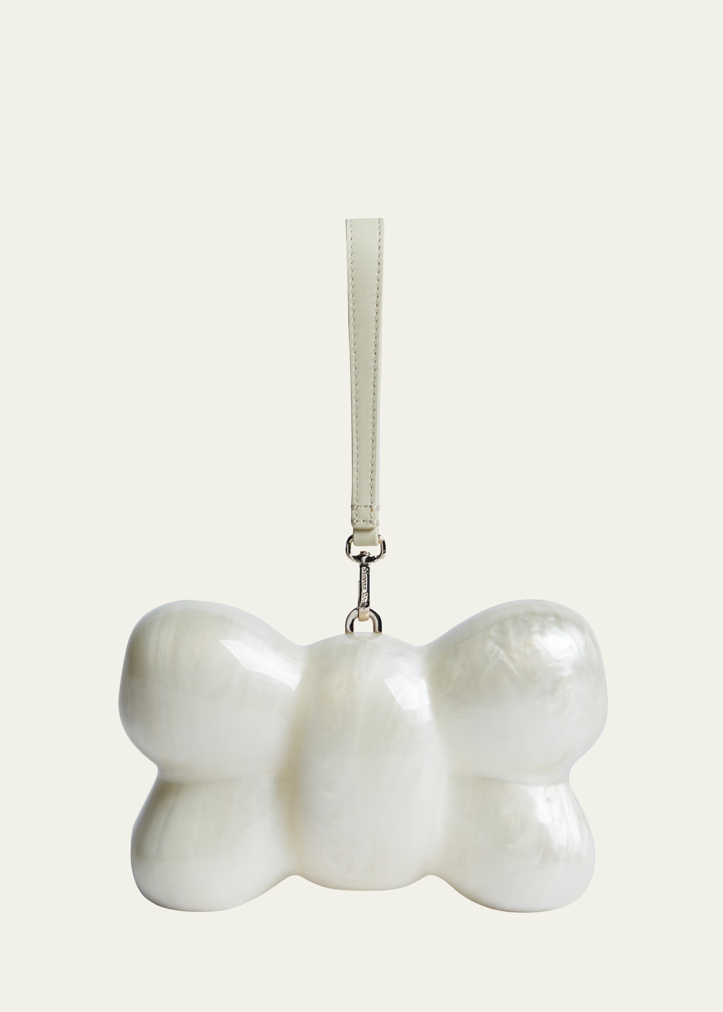 Simone Rocha bow-shaped top handle bag in acrylic and leather Detachable top handle Detachable crossbody strap, 19.7"L Can be worn as a top handle or crossbody bag Lining: Viscose Approx. 4.7"H x 11"W x 5.1"D Imported