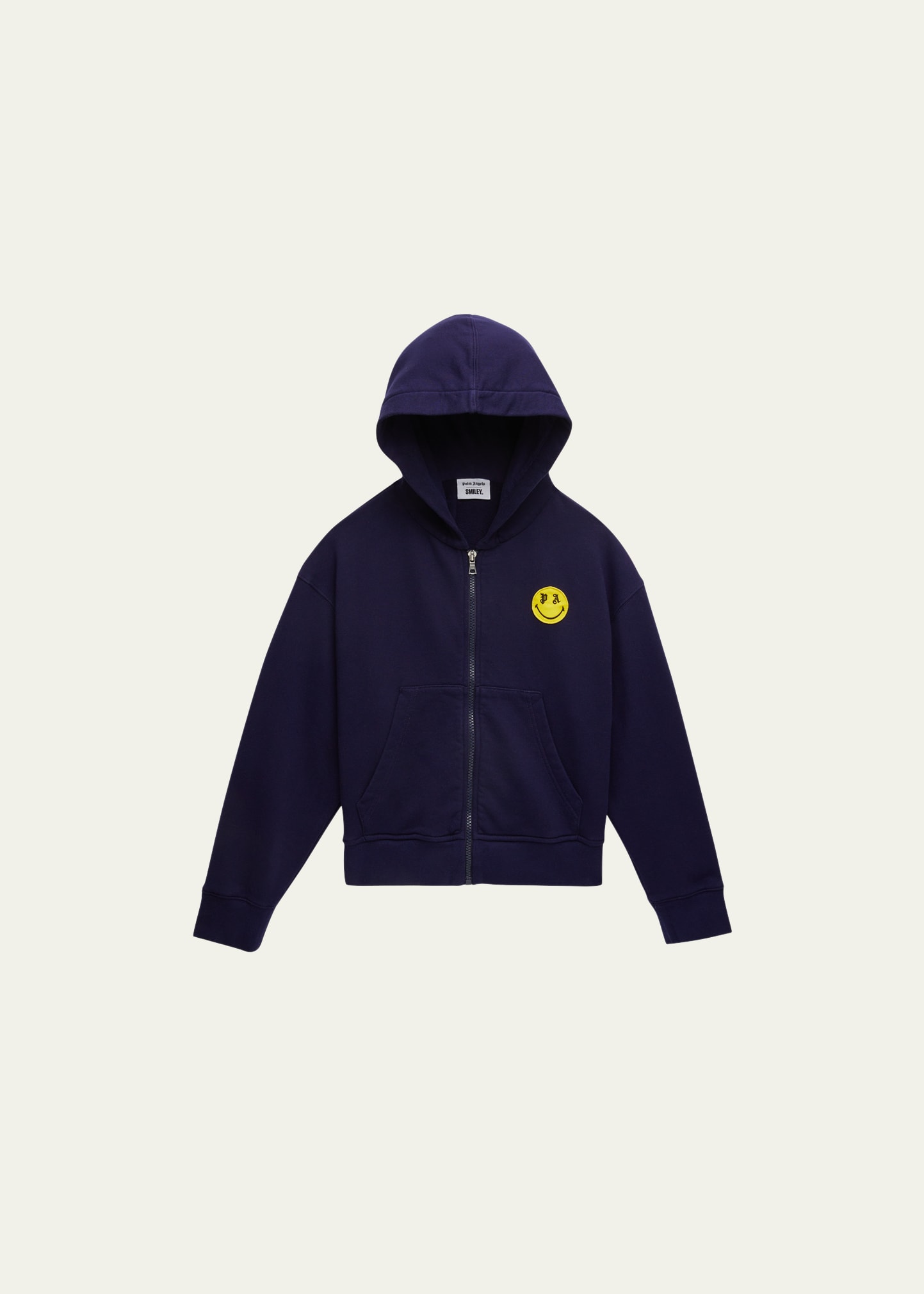 Palm Angels hoodie with logo-print happy face graphic at front Hooded neckline Long sleeves Full zip front Banded cuffs and hem Easy fit Cotton Made in Italy