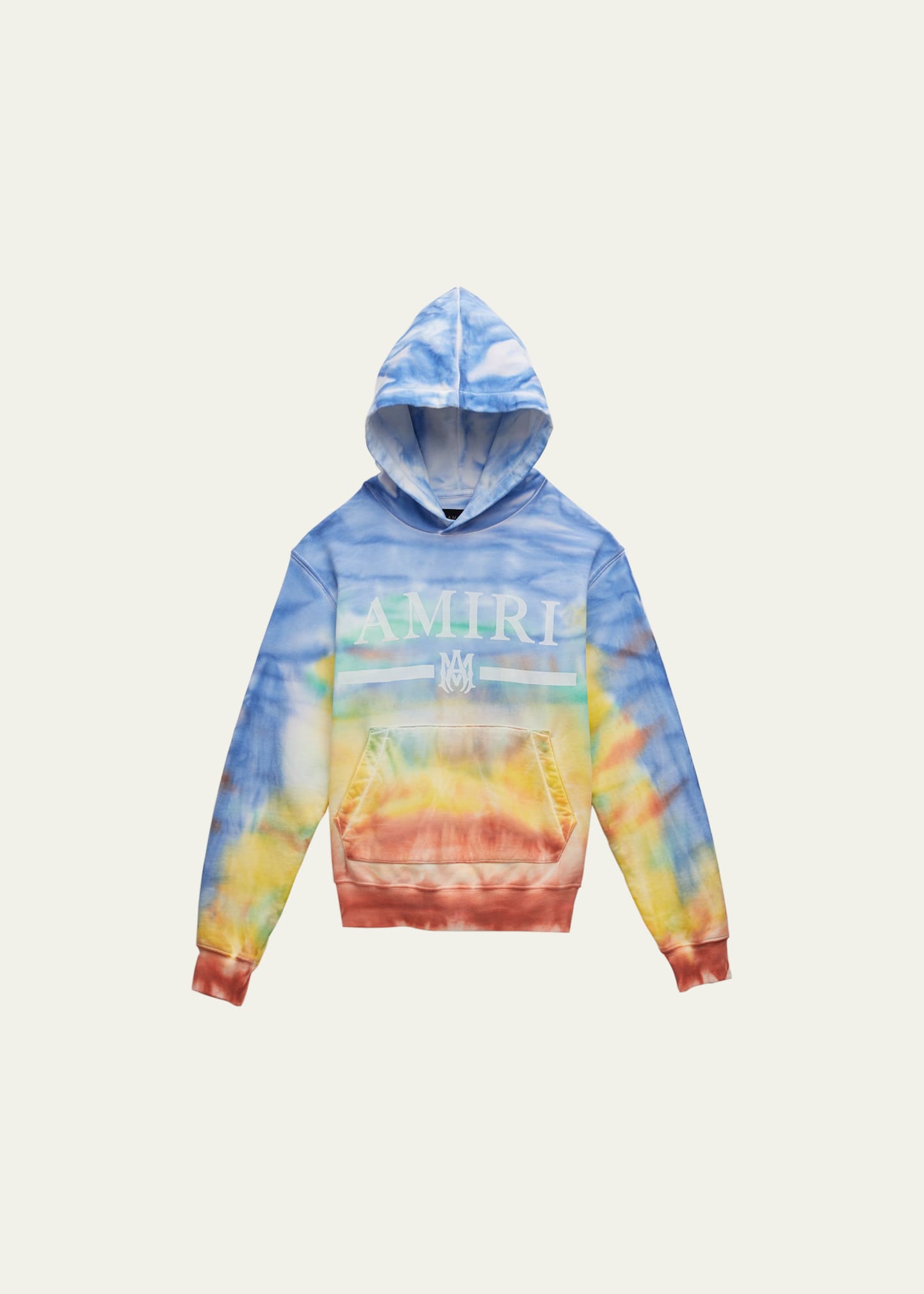 Amiri tie-dye hoodie with signature logo at front Hooded neckline Long sleeves Banded cuffs and hem Kangaroo pocket Pullover style Cotton Made in Italy