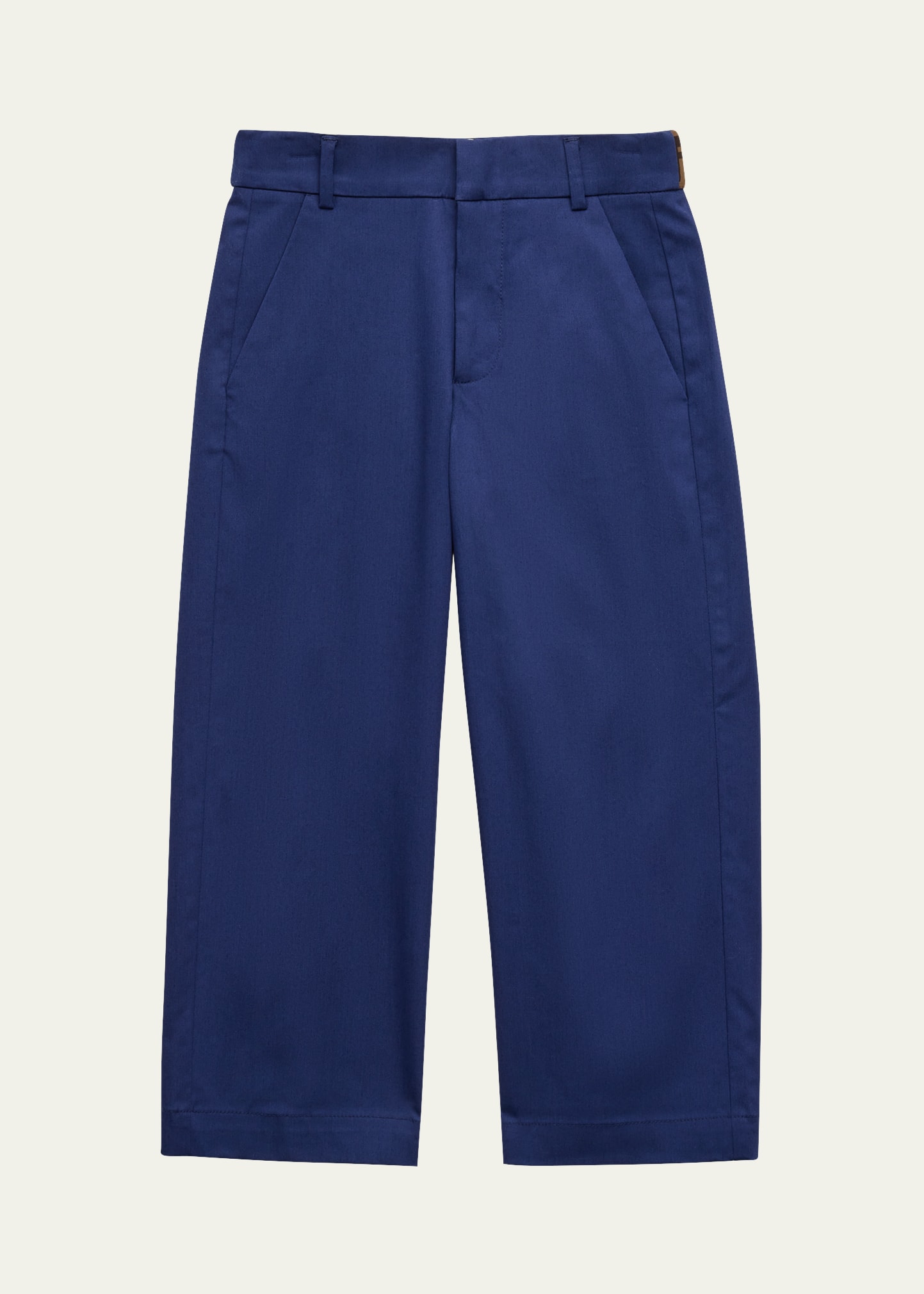Fendi trousers with signature logo tape at back Closure/belt loops Side slip pockets Welt pocket at back Straight legs Easy fit Cotton/elastane Made in Italy