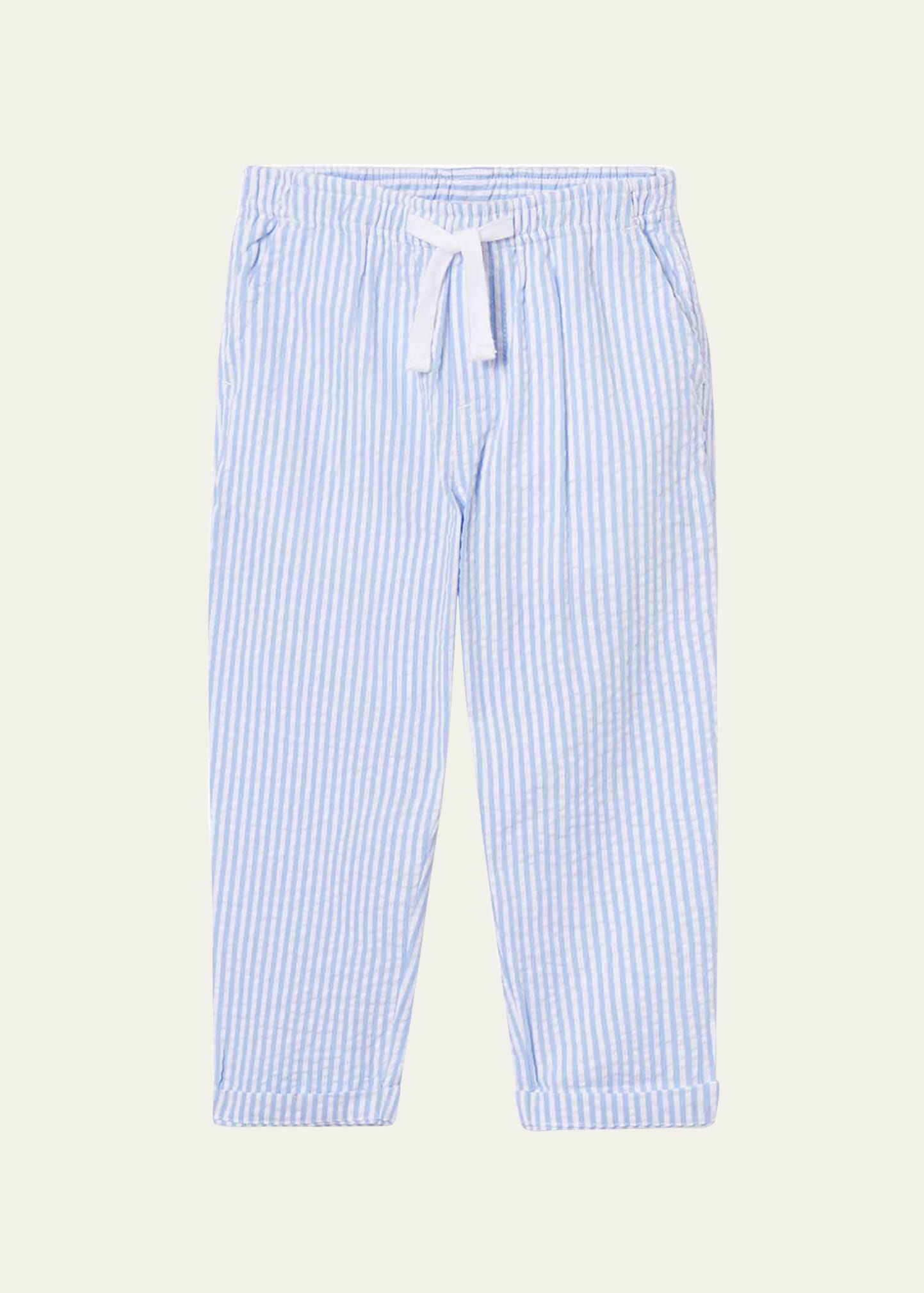 Classic Prep Childrenswear "Mason" seersucker pants Elastic drawstring waistband Side slip pockets Back welt pockets Cuffed hem Pull-on style Cotton Unlined Machine wash cold Imported