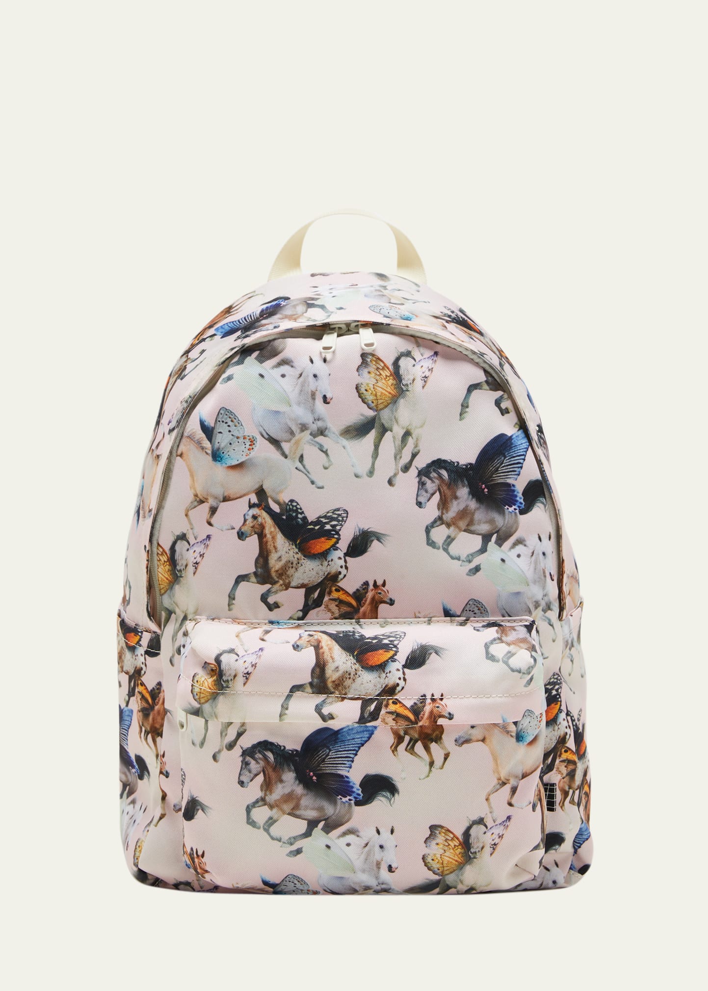 Molo "Mio" backpack in allover skatepark motif Adjustable shoulder straps Exterior front pocket Side slip pockets for drinking bottles Zip-around closure Top loop handle Padded back Recycled polyester Imported