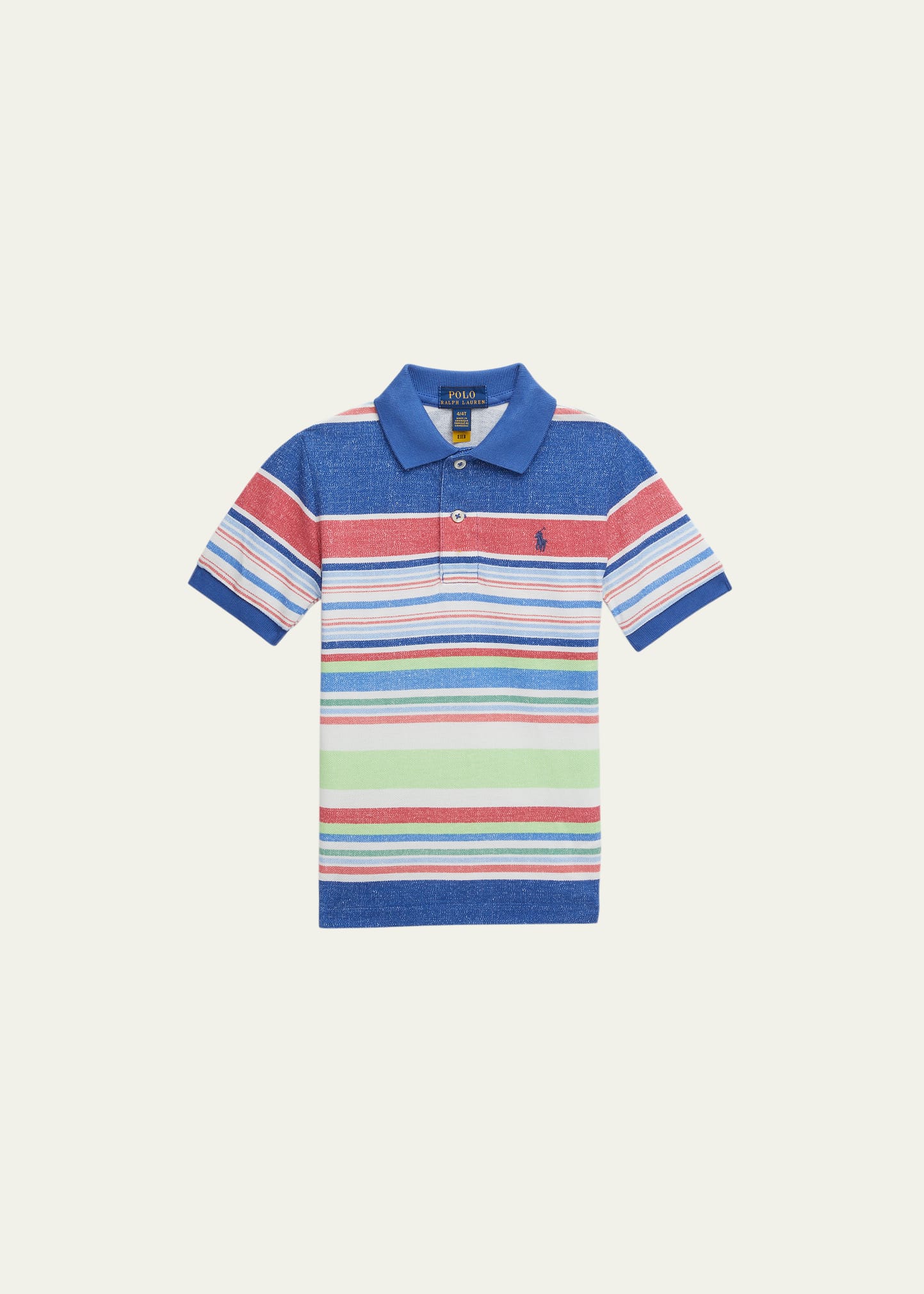 Ralph Lauren Childrenswear mesh polo shirt in multicolor stripes with signature embroidered pony at chest Collared neckline Short sleeves Button placket Straight hem Contrast trim Cotton Imported