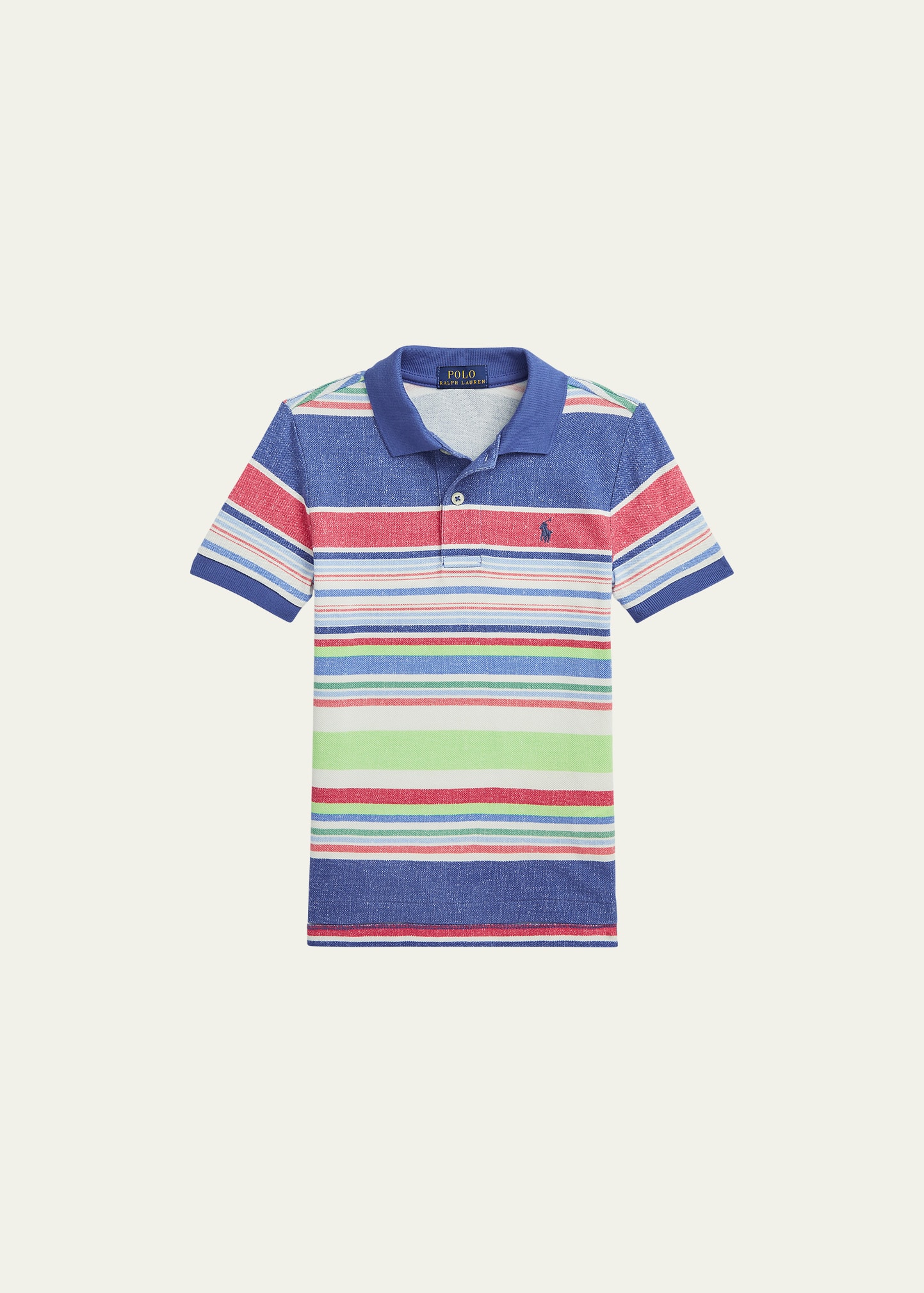 Boy's Multicolor Striped Mesh Polo Shirt, Size S-XL