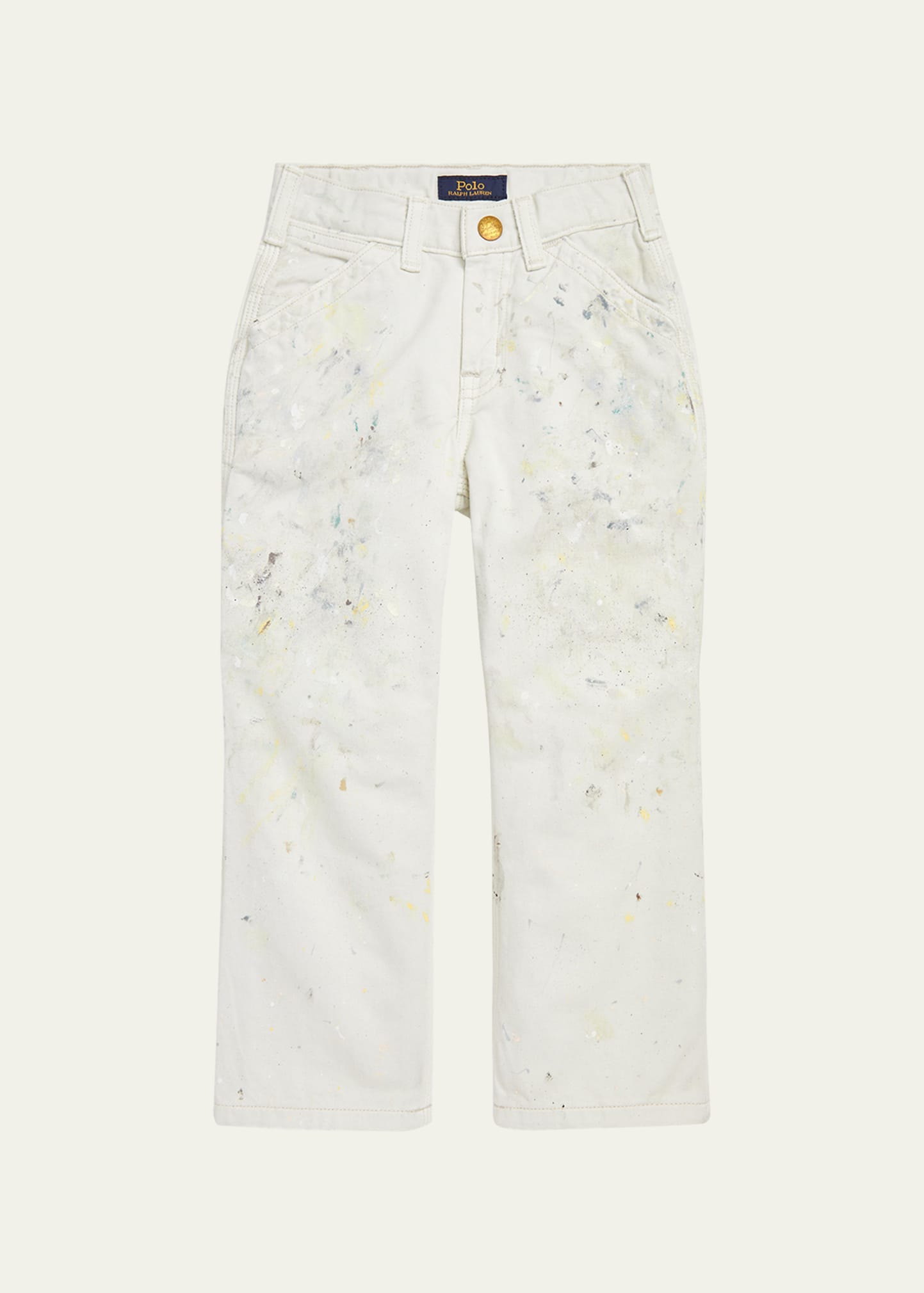 Ralph Lauren Childrenswear cargo pants with paint splatter Button/belt loops;fly Six pocket style Logo label at back Straight legs Relaxed fit Machine washable Cotton Made in Mexico
