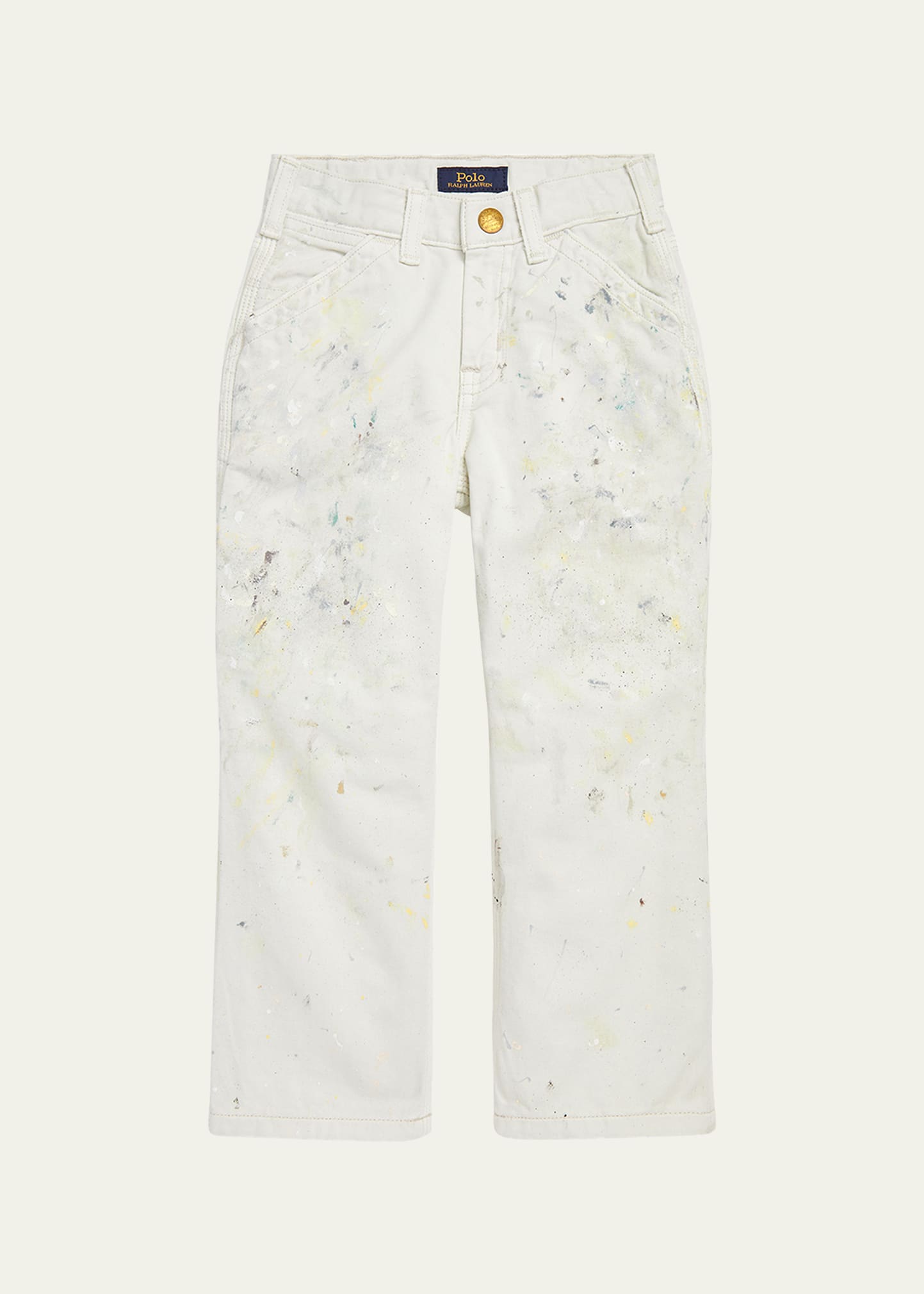Ralph Lauren Childrenswear cargo pants with paint splatter Button/belt loops;fly Six pocket style Logo label at back Straight legs Relaxed fit Machine washable Cotton Made in Mexico
