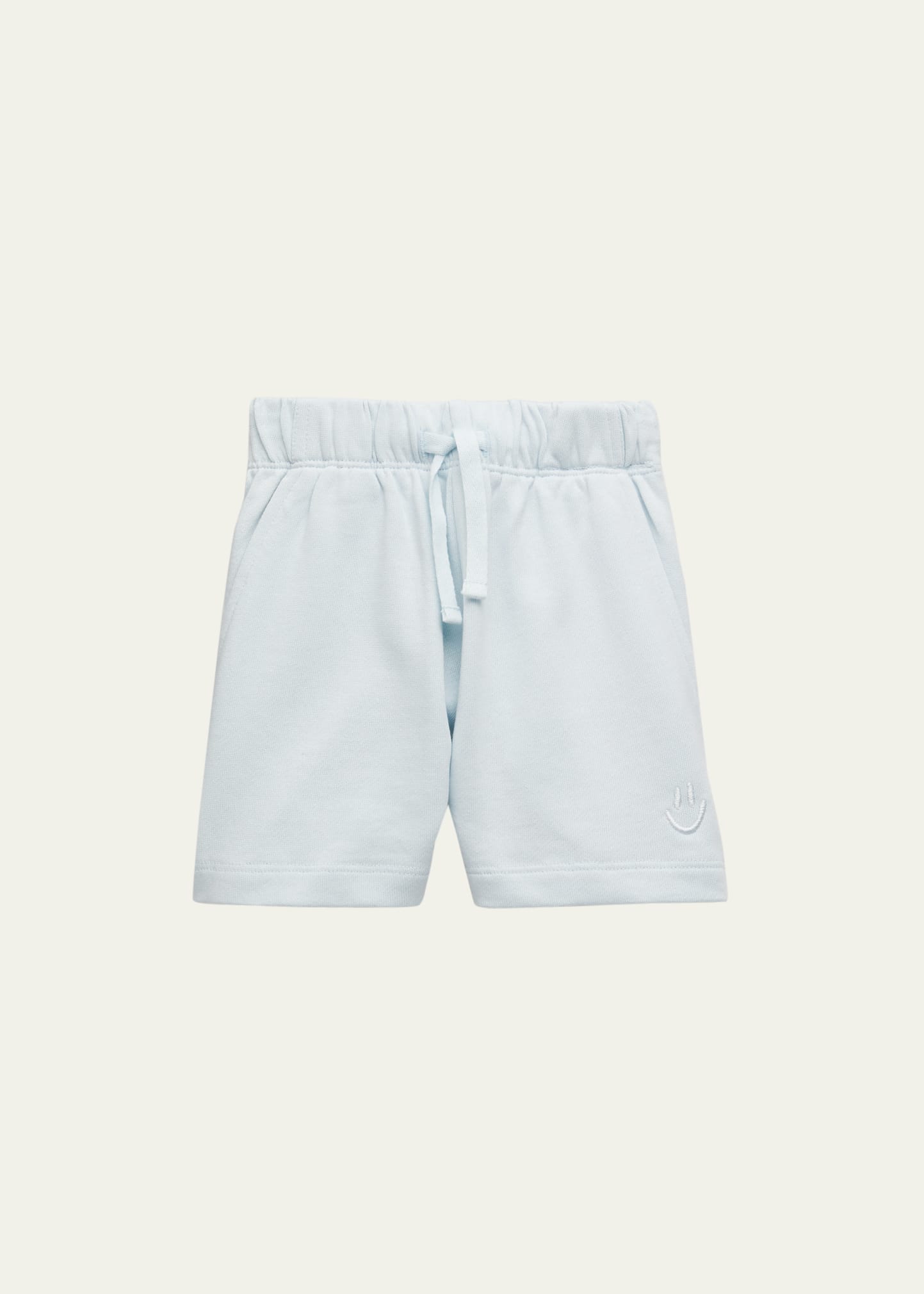 Molo "Simms" shorts with signature happy face embroidered at hem Elasticized drawstring waistband Slip pockets at sides Patch pocket at back GOTS certified organic by ecocert greenlife, certification no. 197496 Organic cotton Imported