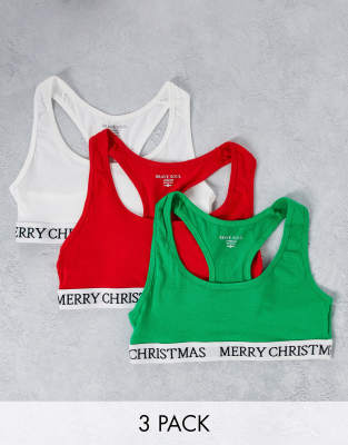 Bralet multipack by Brave Soul It's that time of year Pack of three Scoop neck Racer back Elastic underband Pull-on style