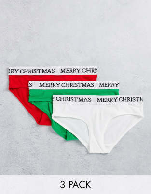 Briefs by Brave Soul It's that time of year Pack of three pairs Festive design Elastic waist High-cut leg
