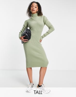 Brave Soul Tall juliet high neck knit sweater dress in sage-Green