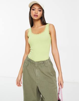 Tops by Brave Soul It's a yes from us Square neck Fixed straps Lace trim High-cut leg Body-conscious fit