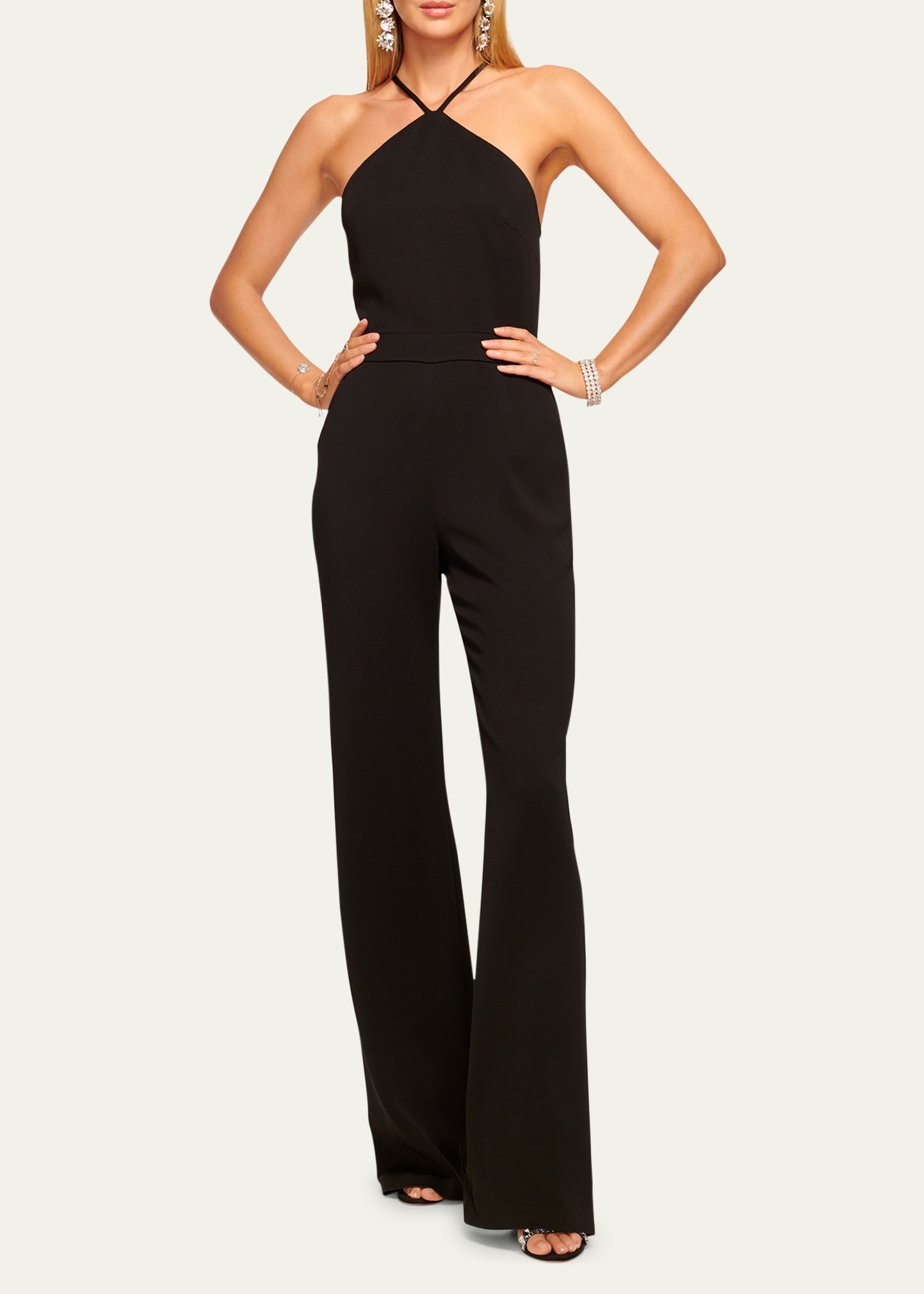 Ramy Brook "Brenna" jumpsuit features an angular bodice designed to keep arms and shoulders on display Approx. 63"L from shoulder to hem Halter neckline Sleeveless Slanted side pockets Full length Wide legs Invisible back zip Viscose/elastane Dry clean Imported