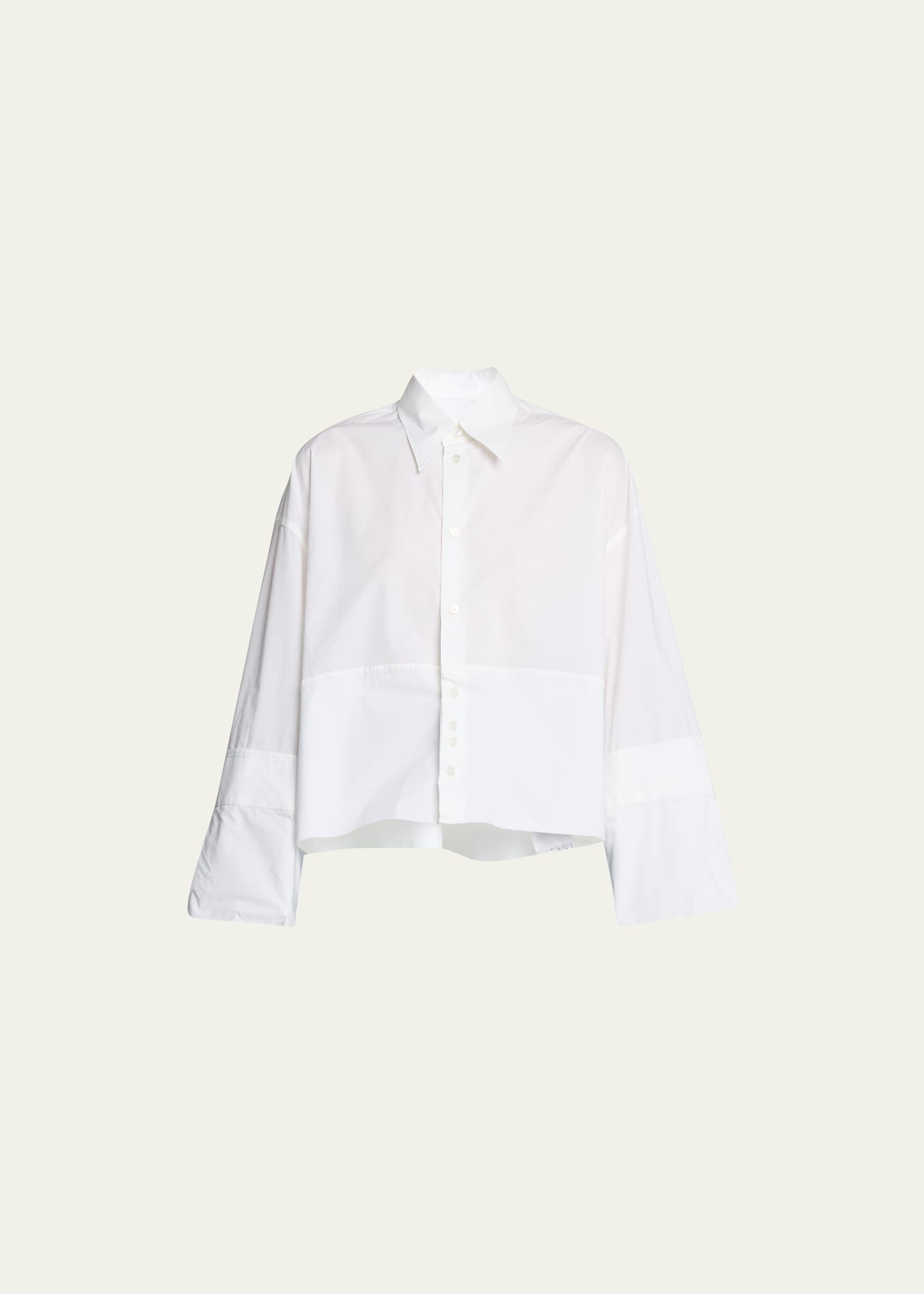 MM6 Maison Margiela cotton shirt featuring long flared sleeves with button cuffs Point collar Loose fit Raw hem Button-front closure Cotton Machine wash cold Made in Italy