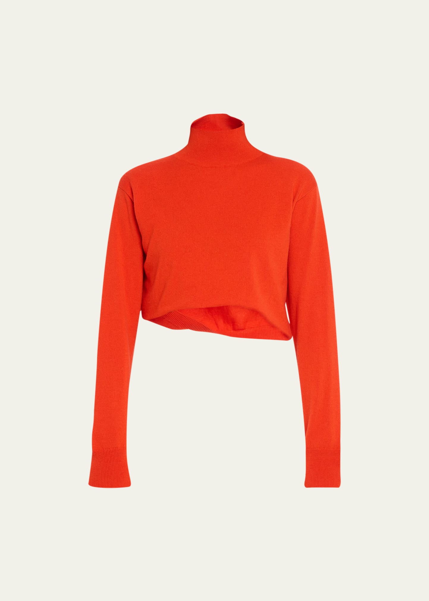 THE ROW "Callan" ribbed top with front draping effect Mock neckline Long sleeves Relaxed fit Asymmetric hem Pullover style Cashmere Made in Italy