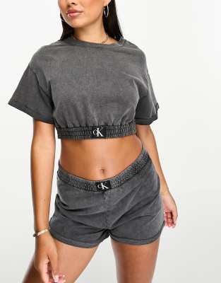 Tops by Calvin Klein Part of a co-ord set Shorts sold separately Crew neck Short sleeves Elastic underband Cropped length Regular fit