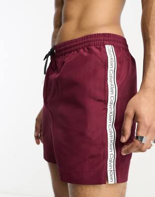 Calvin Klein core logo tape short drawstring swim shorts in wine-Red