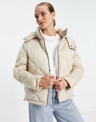 Calvin Klein diamond quilted padded hooded jacket in cream-Neutral