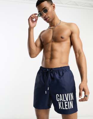 Swimwear by Calvin Klein Just add water Drawstring waistband Side pockets Logo printed on front Single back pocket with eyelet drain
