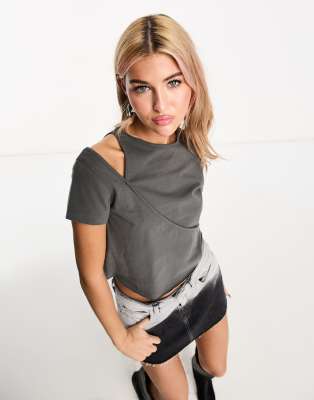 Calvin Klein Jeans cutout baby t-shirt in gray - exclusive to ASOS