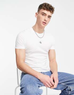 Calvin Klein Jeans monogram chest small logo T-shirt in white