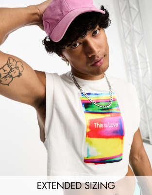 Tops by Calvin Klein Jeans Designed in celebration of Pride Graphic print Crew neck Sleeveless style Oversized fit Unisex style