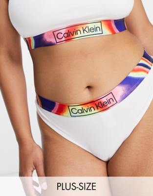 Calvin Klein Plus Size Reimagined Pride cotton blend thong in white - WHITE