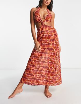 Dresses by Candypants In association with sunny days Halterneck style Knot detail Cut-out waist Tie closure Regular fit