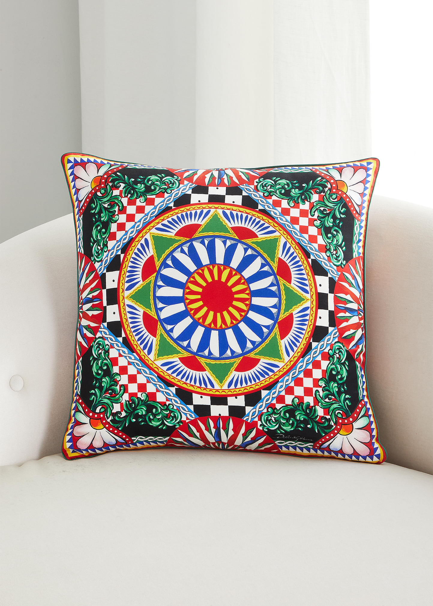 Cushion is crafted of silk twill in a foulard print from the archives with matching piping Filled with polyfill Zipper closure Approx. 18"W x 18"L Item Weight (Lbs.): 1.0 Dry clean Made in Italy