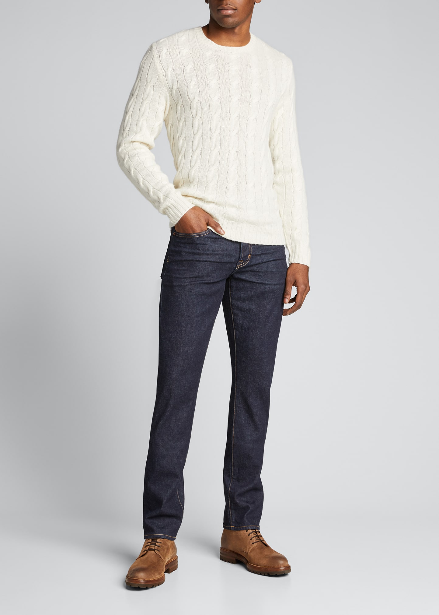 Ralph Lauren sweater in cable knit. Ribbed neckline, cuffs, and hem. Crew neckline. Long sleeves. Pullover style. Classic fit. Cashmere. Made in Italy.