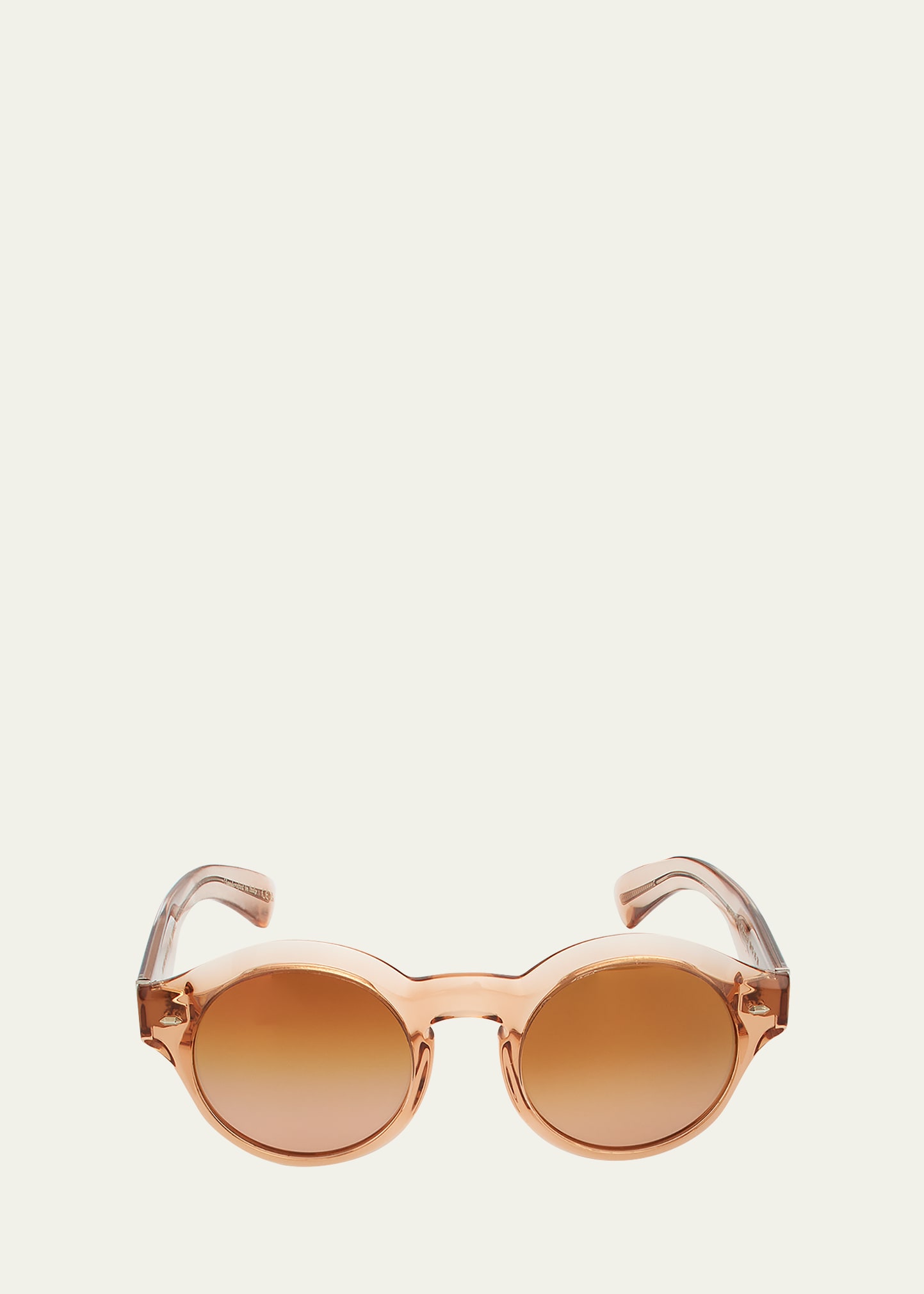 Oliver Peoples "Cassavet" round sunglasses feature accented inlays at front frames/temples Gradient lenses Full-rim frames Keyhole nose bridge Tapered arms Logo inlay at curved temple tips Acetate/glass 100% UVA/UVB protection Made in Italy