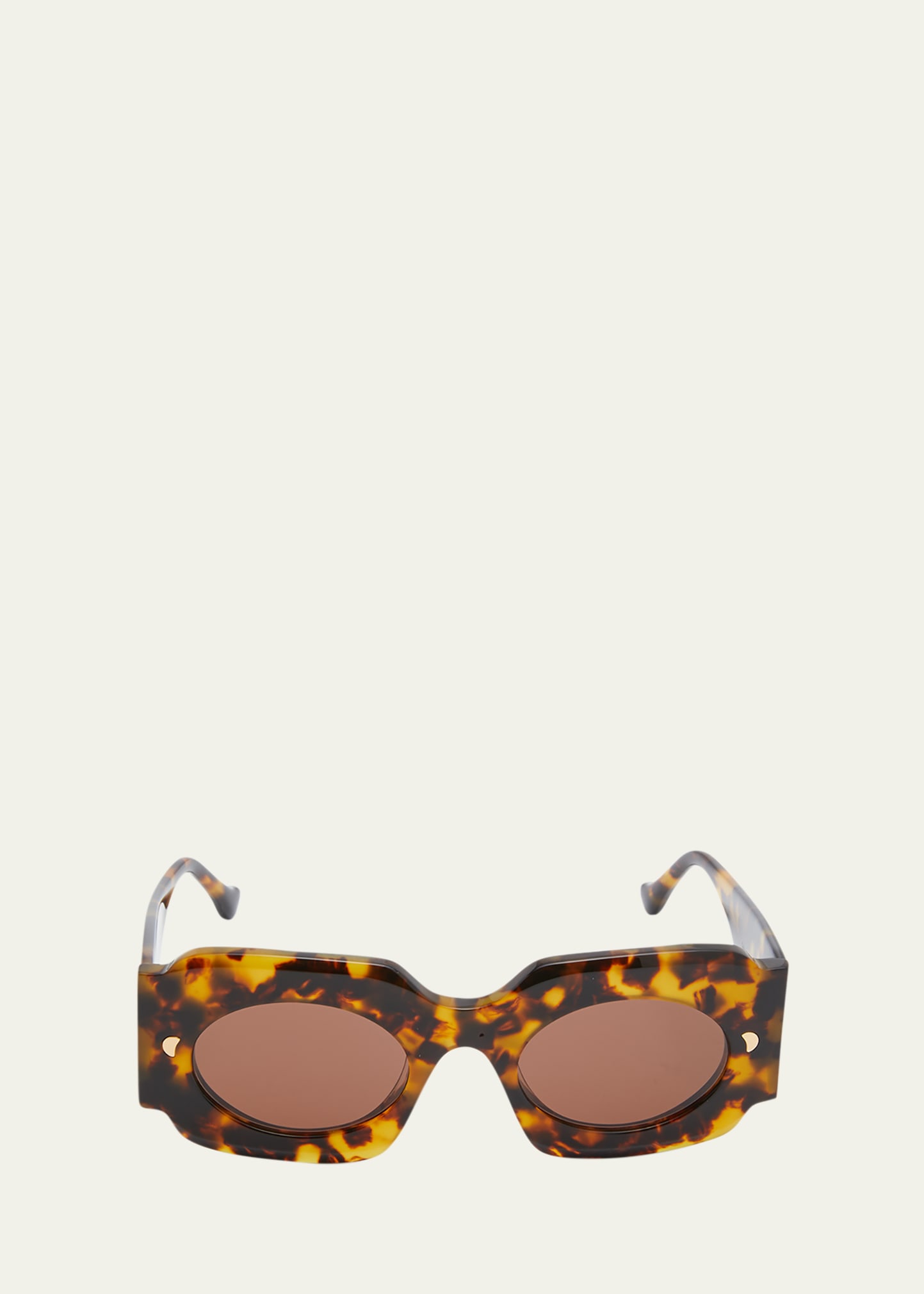 Nanushka "Cathi" square sunglasses in acetate Oval-shaped solid-color lenses Wide, tapered arms 100% UVA/UVB protection Imported