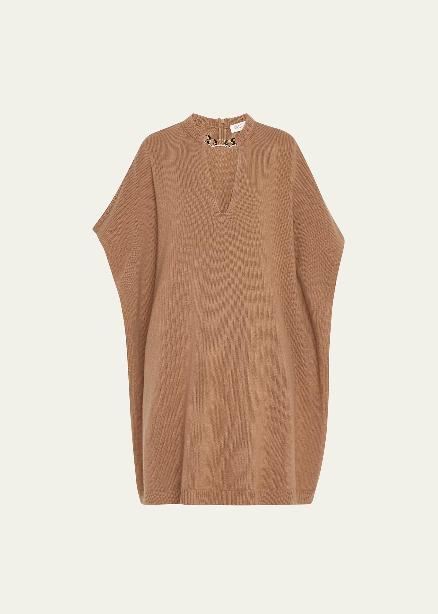 Valentino knit poncho with chain collar Crew neckline Short sleeves Relaxed fit Pullover style Cashmere/wool Made in Italy