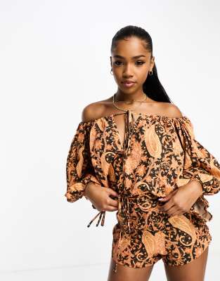 Charlie Holiday Mila paisley print blouse in peach - part of a set-Multi