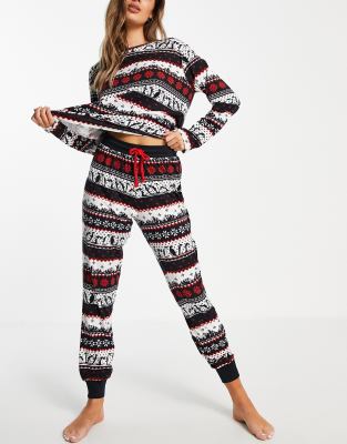 Pajama set by Chelsea Peers Includes a top and sweatpants Regular top Crew neck Long sleeves Regular, tapered sweatpants Elasticated drawstring waist Fitted cuffs