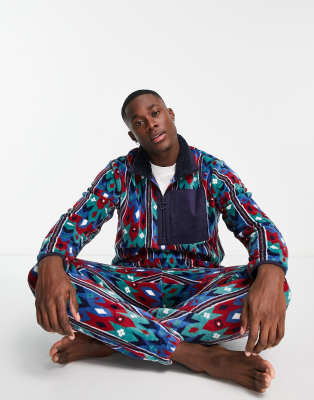 Chelsea Peers quarter zip fleece and jogger set in navy and red print