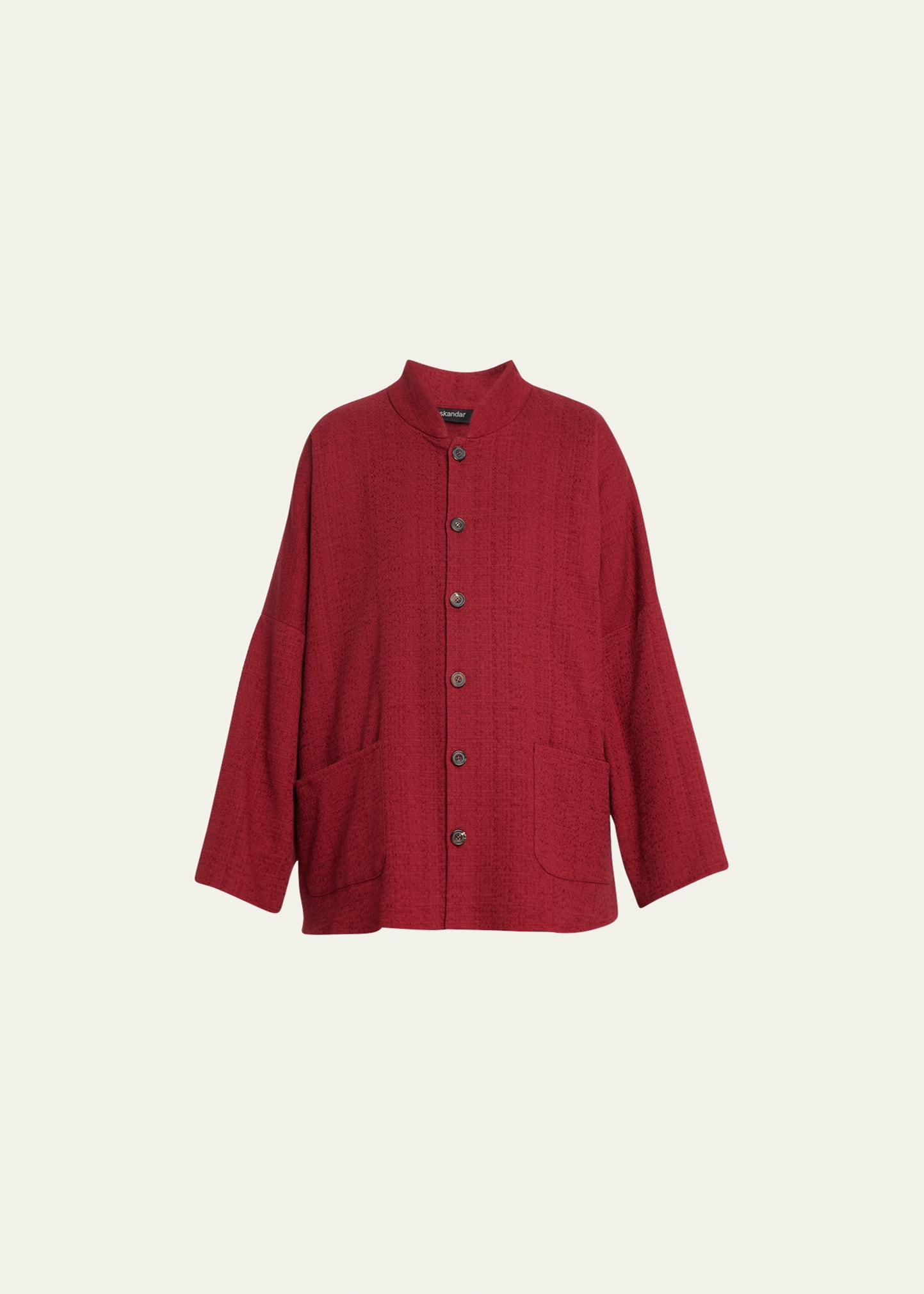 Eskandar Chinese Imperial jacket with Chinese collar Single-breasted front Long sleeves Side patch pockets Wide fit Long length Cotton Hand wash Imported