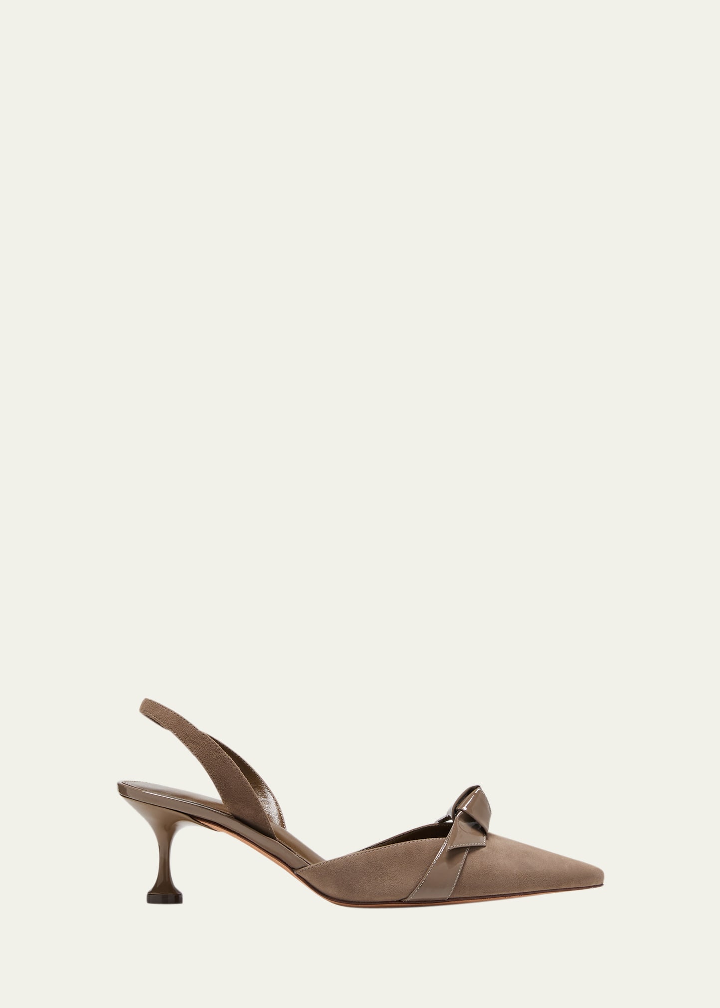 Alexandre Birman "Clarita" suede pumps adorned with a patent leather bow 2.36 in / 60 mm kitten heel Pointed toe Slingback strap Leather outsole Lining: Leather Made in Brazil